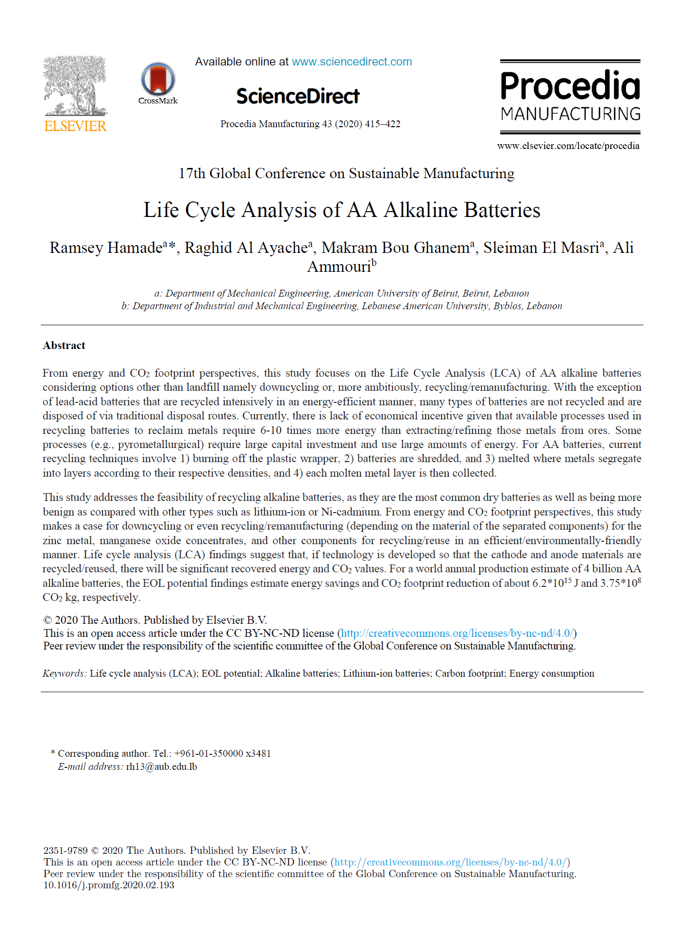 Life Cycle Impacts of Alkaline Batteries With a Focus on End-of-life